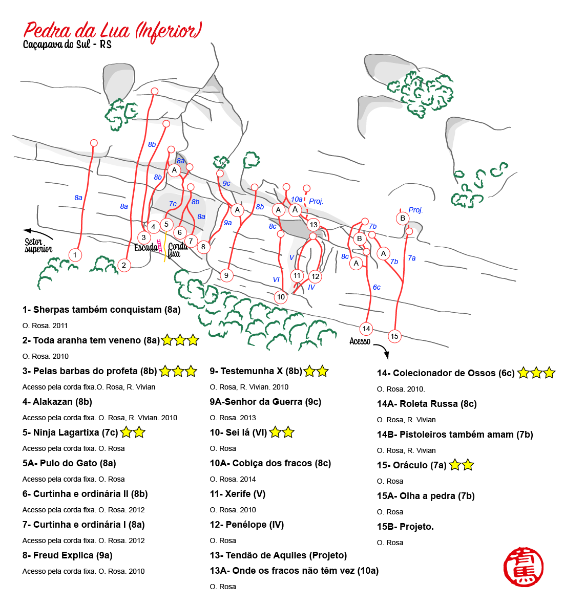 Em 2017 foi lançado do livro “As 50 vias clássicas no Brasil” de Flávio e Cintia Daflon, onde a via “Sem medo de ser feliz” figurou como uma das vias representantes do Rio Grande do Sul. O lançamento deste livro trouxe uma nova leva de escaladores interessados em conhecer a região, trazendo um pouco de movimento à região.