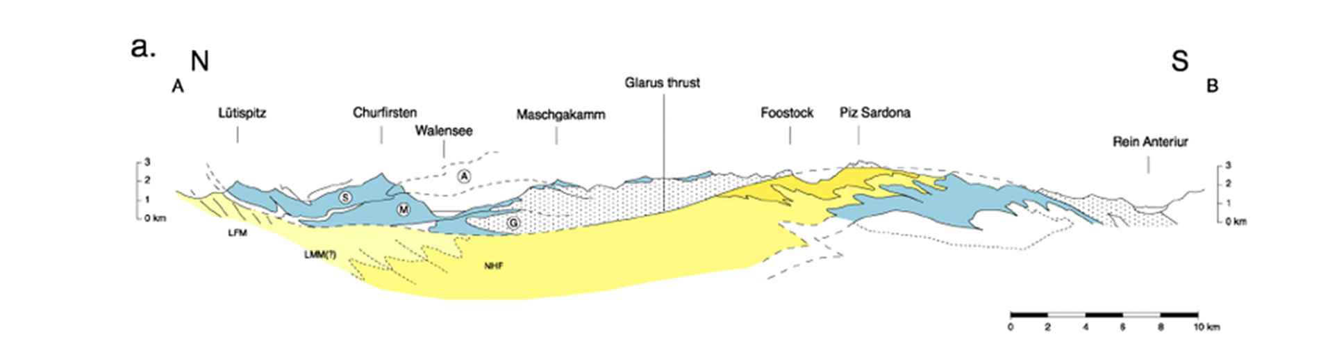 O que torna Sardona especial é que ali rochas muito antigas foram empurradas sobre rochas muito mais jovens — o que é contrário à expectativa usual (na estratigrafia clássica). Esse empurrão tectônico é chamado thrust e interpreta-se que a camada de cima, mais antiga, deslizou aproximadamente 40km sobre a camada inferior.